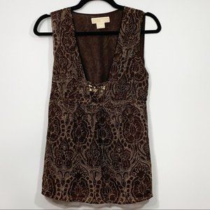 Tie in back. Like new condition only worn once. Polka dot floral design with low cut neckline.