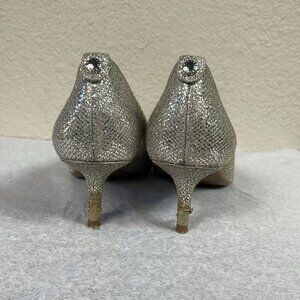 Michael Michael Kors Silver Glitter Flex Pointed Toe Kitten Heels Pumps Sz 6.5