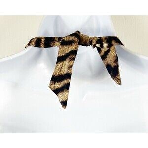 Michael Michael Kors Size 12 Animal Print Halter Ruched One Piece Swimsuit Logo