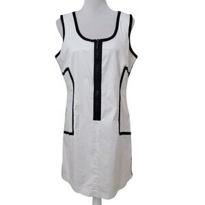 Michael Michael Kors Size 12 White w/Black Detail Sleeveless Front Zip Dress