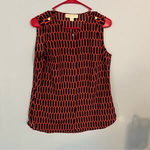 Michael Michael Kors Sleeveless Top w/ Hidden Buttons Size 6 Red Dark Blue