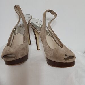 Michael Michael Kors Slingback Stiletto Heels Tan Suede Leather Sz 9 GUC