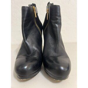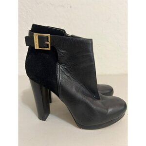 Michael Michael Kors Stacked Heel Bootie Gold Zipper Leather Suede Mix Sz 8.5