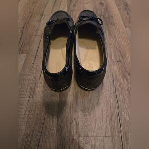 The Michael Kors Sutton Moc PVC Almond Toe in Brown/Black, Size 8 is a stylish and comfortable flat shoe with a solid pattern and almond toe shape. It features logo accents, cushioned insole material, arch support, and slip-resistant design, making it ideal for casual occasions in all seasons. This designer shoe from the Michael Kors Sutton collection combines fashion and functionality, perfect for women looking for a versatile and durable footwear option.