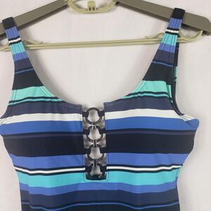 Michael Michael Kors Swimsuit Womens 8 Black Multi Stripe One Piece O-Ring