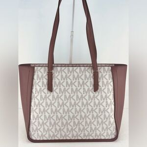 Stylish and versatile, this Michael Kors tote bag features a chic brown and white design.
