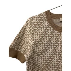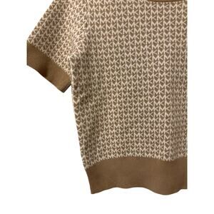 Michael Michael Kors Tan & Off White Short Sleeve Logo Sweater L