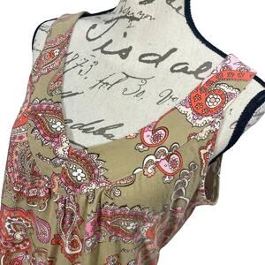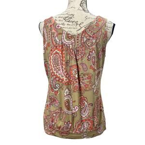 Michael Michael Kors Green and Pink Paisley Print Tank Top Sleeveless Blouse in Size Small.