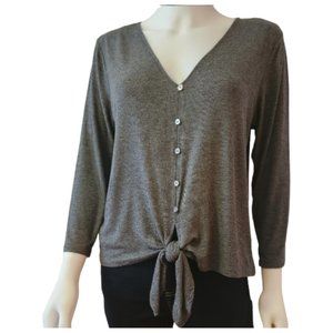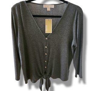 Michael Michael Kors Tie-Front Top. Derby Basics V-Neck. Gray NWT Size L