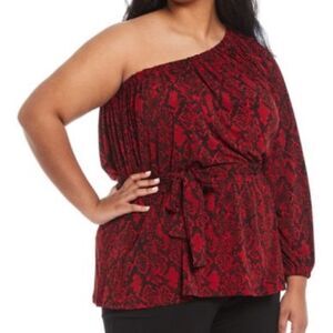 Michael Michael Kors Plus Size One Shoulder Long Sleeve Belted Python Tunic