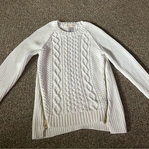 Michael Michael Kors White Cable Knit Chunky Sweater w/ gold zippers on side