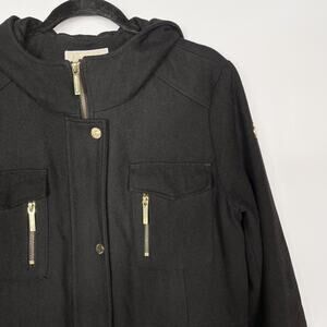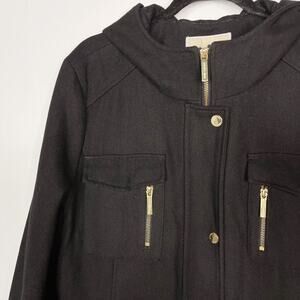 Michael Michael Kors Womens 14 Black Wool Blend Hooded Peacoat Jacket Gold