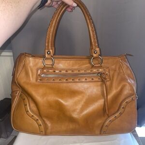 Michael Michael Kors Women's Brown Tan Leather Studded Work Bag Purse Handbag