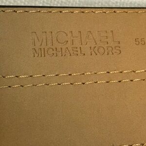 Elevate your style with this Michael Michael Kors designer belt in brown and cream. Perfect for any occasion.