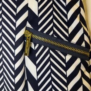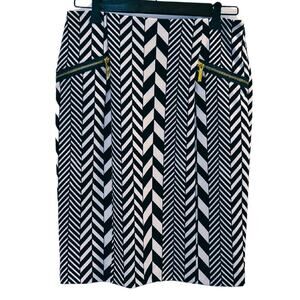 Black and white abstract chevron skirt. Zipper front pockets. Zipper and eye hook closure. In good used condition.