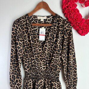 Michael Michael Kors Women's Julia Smocked-Waist Tiered Dress XS Dark Camel