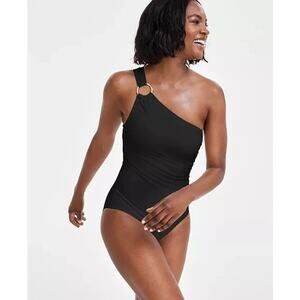 Michael Michael Kors Women's One-Shoulder One-Piece Swimsuit Black, Size 8 0066