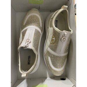 Michael Michael Kors Womens Round Toe Sami Zip Sneakers White Size 7.5M Defected