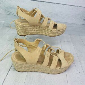 Michael Michael Kors Womens ST16A Beige Lace Up Wedge Heels Sandals Sz 8.5 M
