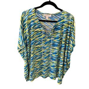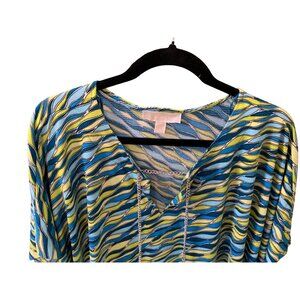 Michael Michael Kors Womens Size Small medium Oversized Shirt Top Pullover Chain Detail Blue Green