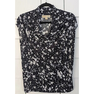 Michael Michael Kors Women's Small Top ~ Splatter Print Sleeveless Cowl Neck Casual Black White