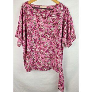 Michael Michael Kors Womens Top Size Medium Pink Floral Short Sleeve Blouse
