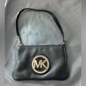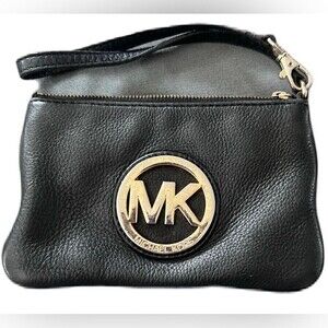 Michael Michael Kors Wristlet Black Leather with Gold Emblem mini bag