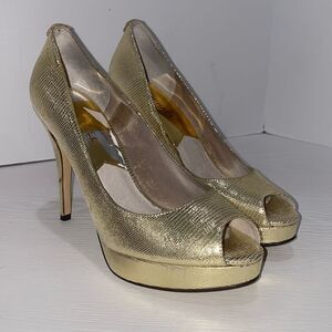 Michael Michael Kors York Platform Gold Stiletto Evening Wear Heels 7.5