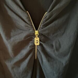 Michael Michael Kors Zip Long Sleeve Black Blouse Women’s 1X Tunic Neutral Chic