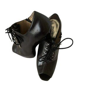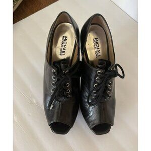 Elegant black leather open toe heels by Michael Kors, perfect for any occasion. Designed in size 9M, these heels combine comfort and style, making them an ideal addition to your wardrobe. grunge witchy