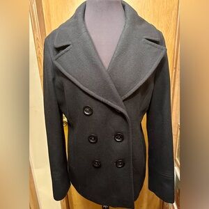 Michael Michael Kors size large black wool pea coat in excellent condition. This classic beautiful coat is lined and measures approximately 21 1/2 inches from pit to pit and 27 inches in length as shown in pictures. Has 2 front pockets.