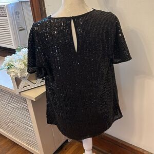 Michael Michael Kors black sequined short sleeve blouse Size M New