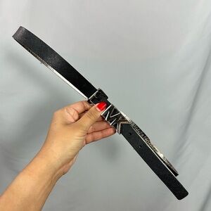Michael Michael Kors black skinny belt with silver logo buckle size M