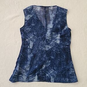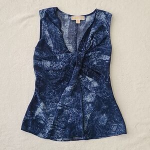 Michael Michael Kors blue sheer tank XS Sleeveless Twist Knot Front Watercolor