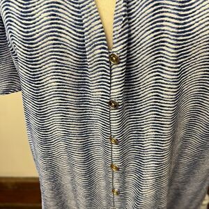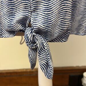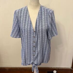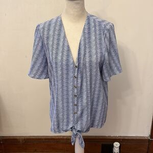 Michael Michael Kors blue white short sleeve button tie front blouse Size M EUC