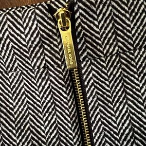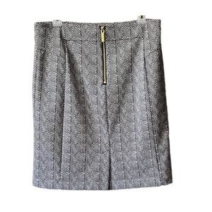 Chevron print skirt with decorative logo gold zipper back. Size Medium.