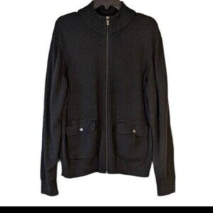 This amazing sweater from Michael Michael Kors is in great condition. It's a black long sleeve sweater with a mock neck a full zipper and snap button on the pockets. Size Large.