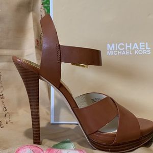 Michael Michael Kors heels NWOT, Oksana Heels, Luggage color, Size 6 1/2.