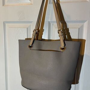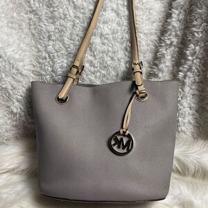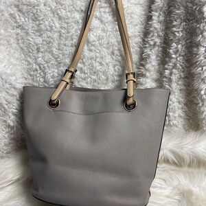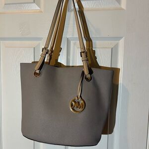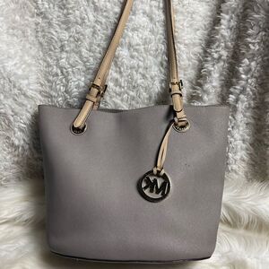 Michael Michael Kors jet Set Gray Medium Tote gold tone hardwares tan straps