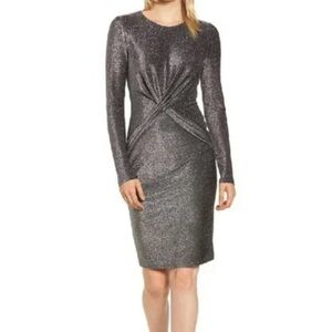 Michael Michael Kors metallic size small long sleeve silver glittery midi Dress