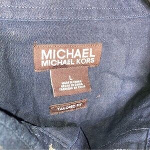 Michael Michael Kors navy blue linen blend button down shirt size large