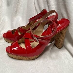 Michael Michael Kors red patent leather strappy chunky cork heel size 8.5
