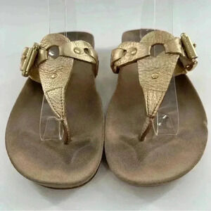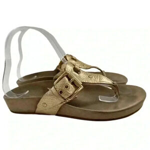 Michael Michael Kors womens sandals size 6 gold metallic leather thong flip flop flatforms