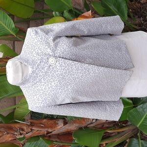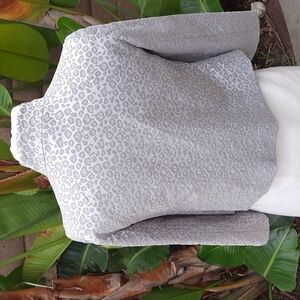 Michael Michael Kors gray silver assymeterical animal print blazer jacket size 2. Excellent pre-owned condition. Smoke free pet friendly home. Size 2 blazer jacket animal print gray Michael Michael Kors silver assymeterical