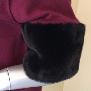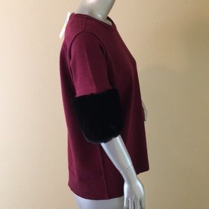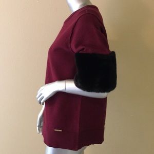 Michael Michael Kors short sleeve sweater. Burgundy with black fuax Fur trim. Crewneck. New with tags! Size medium. Approximate measurements laying flat: length 26", armpit to armpit across chest 20.5", shoulder to end of sleeve 12.5".