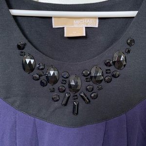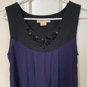 Violet color tank with black jeweled neckline. Flowy. Soft.