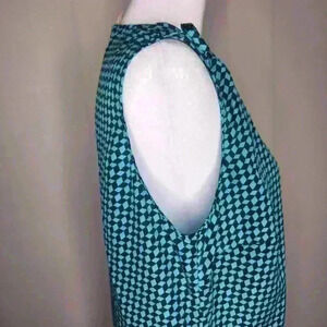 Michael Michael Kors women's blue geometric button down sleeveless blouse size 6. Fitted, no stretch. All buttons intact. In excellent pre-owned condition. No flaws. Measurements are approximate and taken flat.