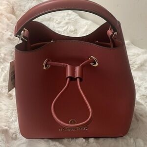 Michael Michael Kors womens crossbody leather SMALL cinnamon drawstring bucket bag NWT