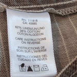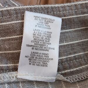 Trouser style pants. Pin-striped. Pockets in front and back. 14W measures 28 inch waist. 50 inch hips. Front zip. 12 inch rise. 32 inch inseam. 22 inch leg opening. Linen Blend, cool and great looking!