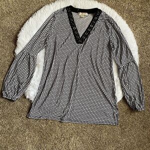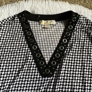 Michael Michael Kors Top Checkered Black White Silver Grommets Women’s Large